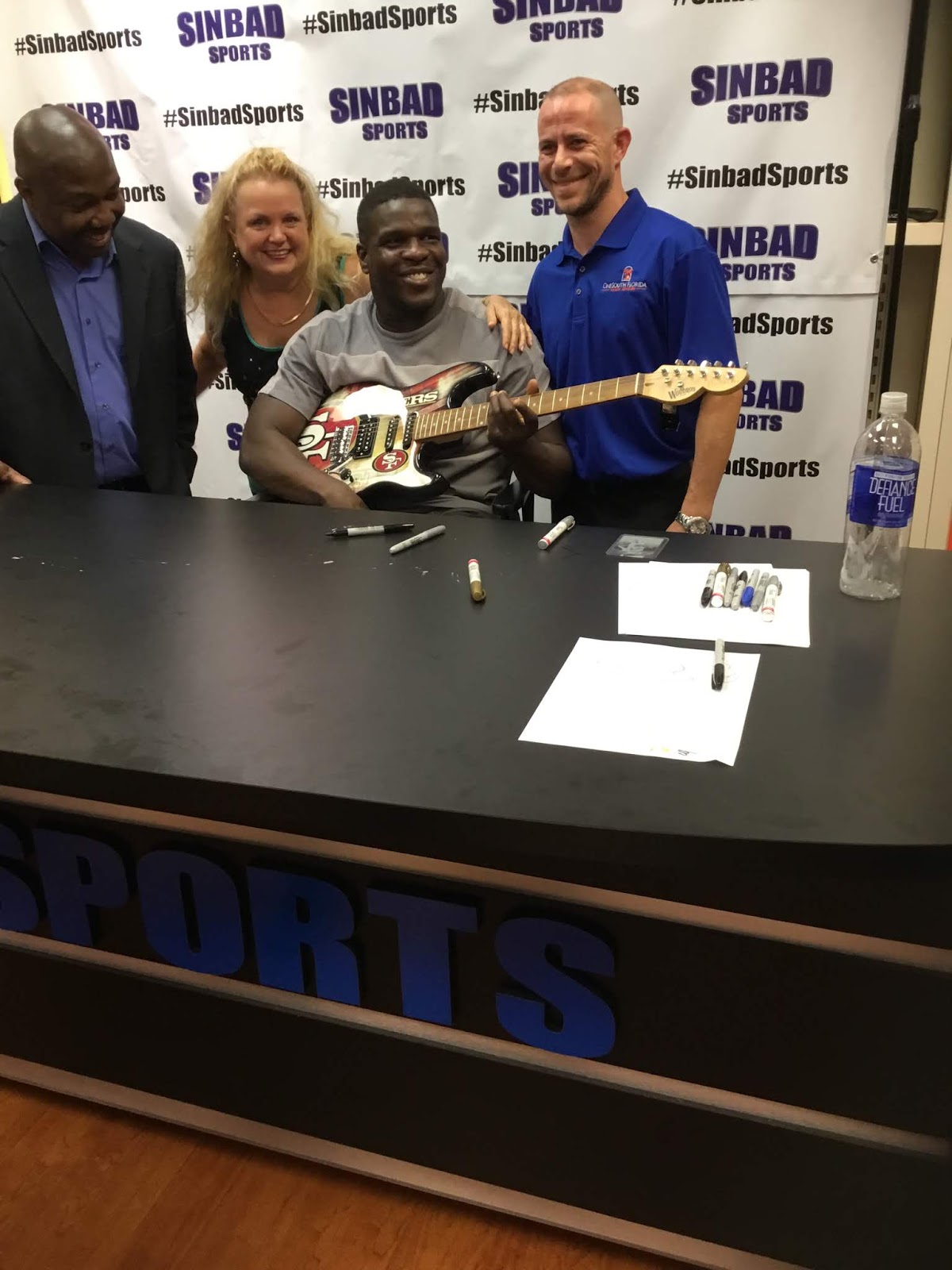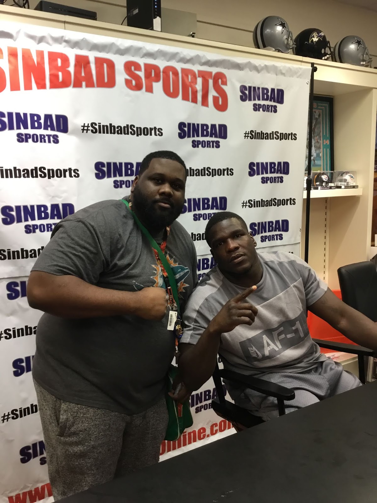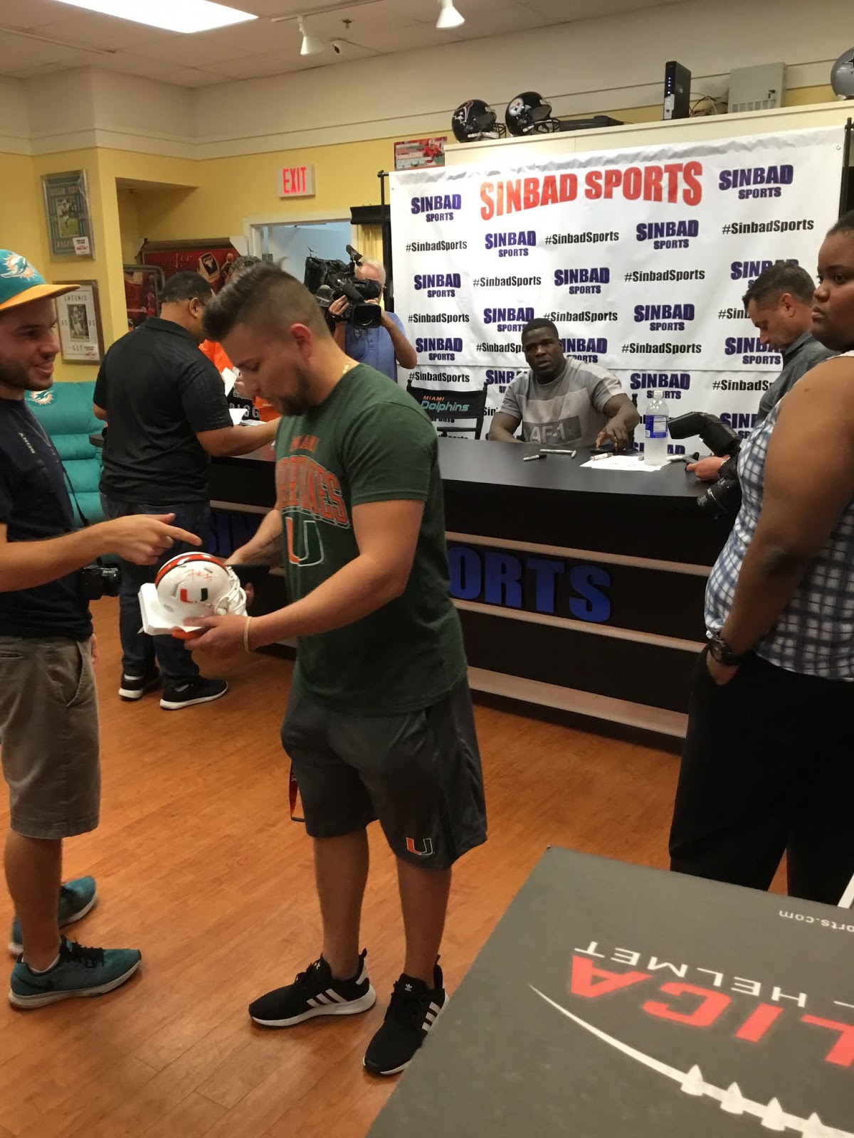 Sinbad Sports is the proud sponsor of the DolphinsTalk.com Podcast and on Thursday night May 31st they held an autograph signing with current Miami Dolphins running back Frank Gore. We had access to the event and took some pictures of Frank meeting and greeting the fans and signing various different and unique items. Take a look below.